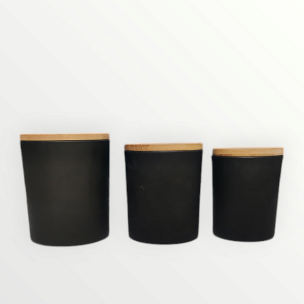 CANDLE GLASS BLACK WITH WOODEN LID - Orestis Craft Center