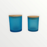 CANDLE GLASS LIGHT BLUE WITH WOODEN LID - Orestis Craft Center