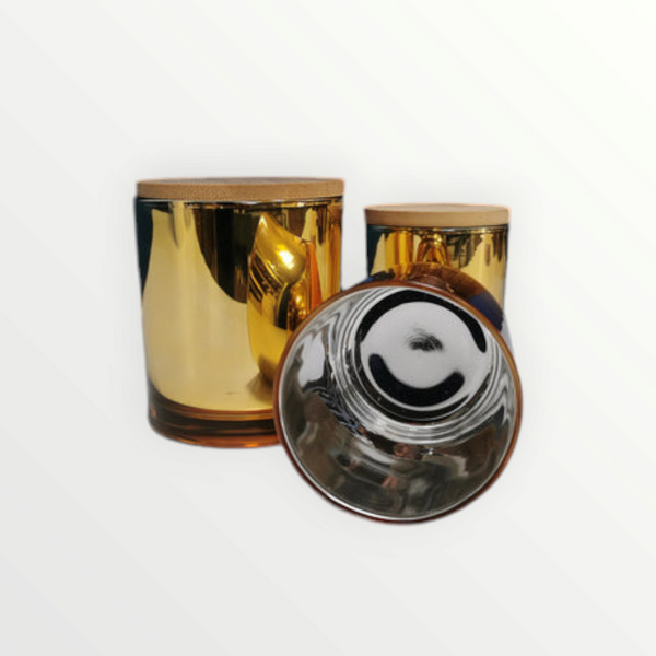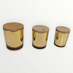 Metallic Gold candle glasses with silver inner and wooden lid.