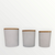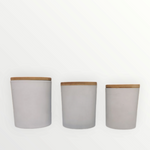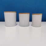 White candle glasses with wooden lid.