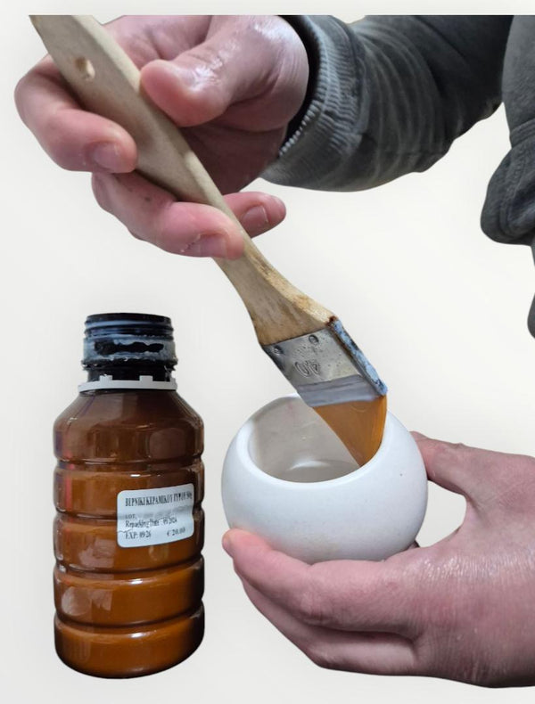 Specialty water based varnish for ceramic objects. It seals the object and makes it durable in all weather conditions.